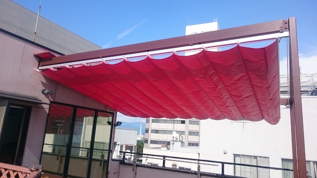 可動ロールオーニング、固定オーニング、壁面サイン